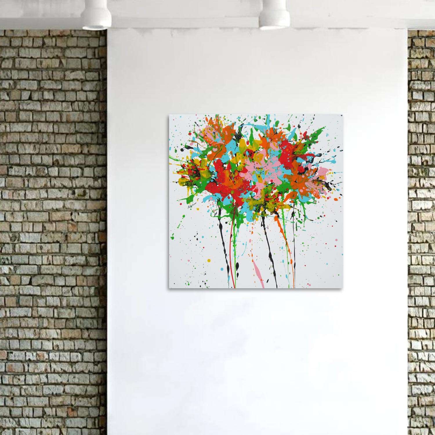 It's an abstract work, made with acrylics on canvas. It's signed on the front and back, mounted on a wooden frame, delivered with its dock system and certificate of authenticity.